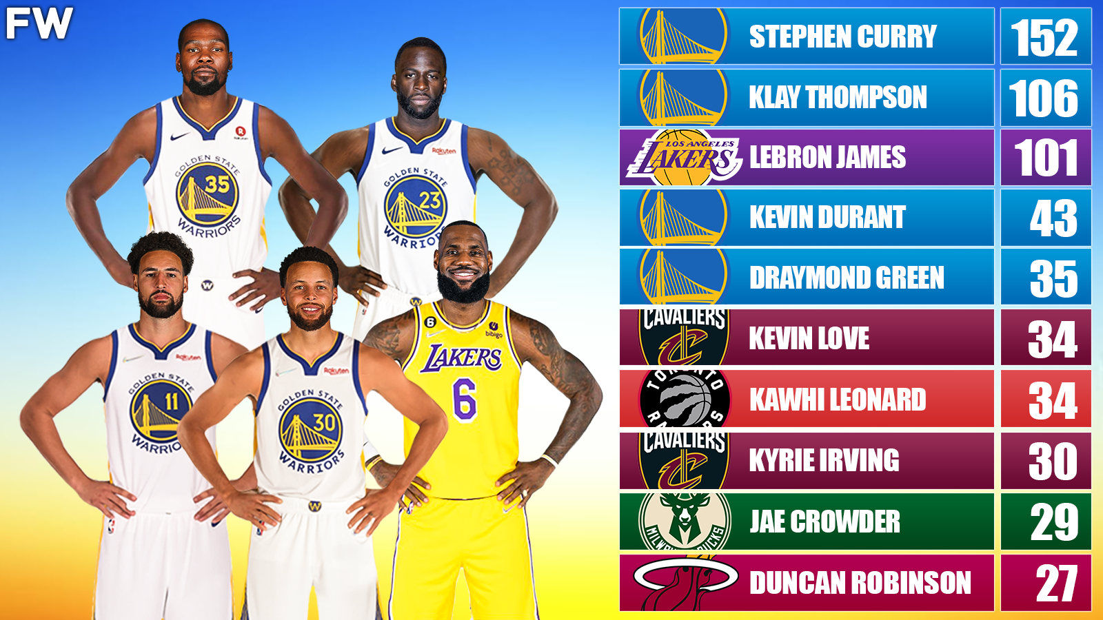 - Only three active NBA players have made 100 three-pointers in the NBA Finals