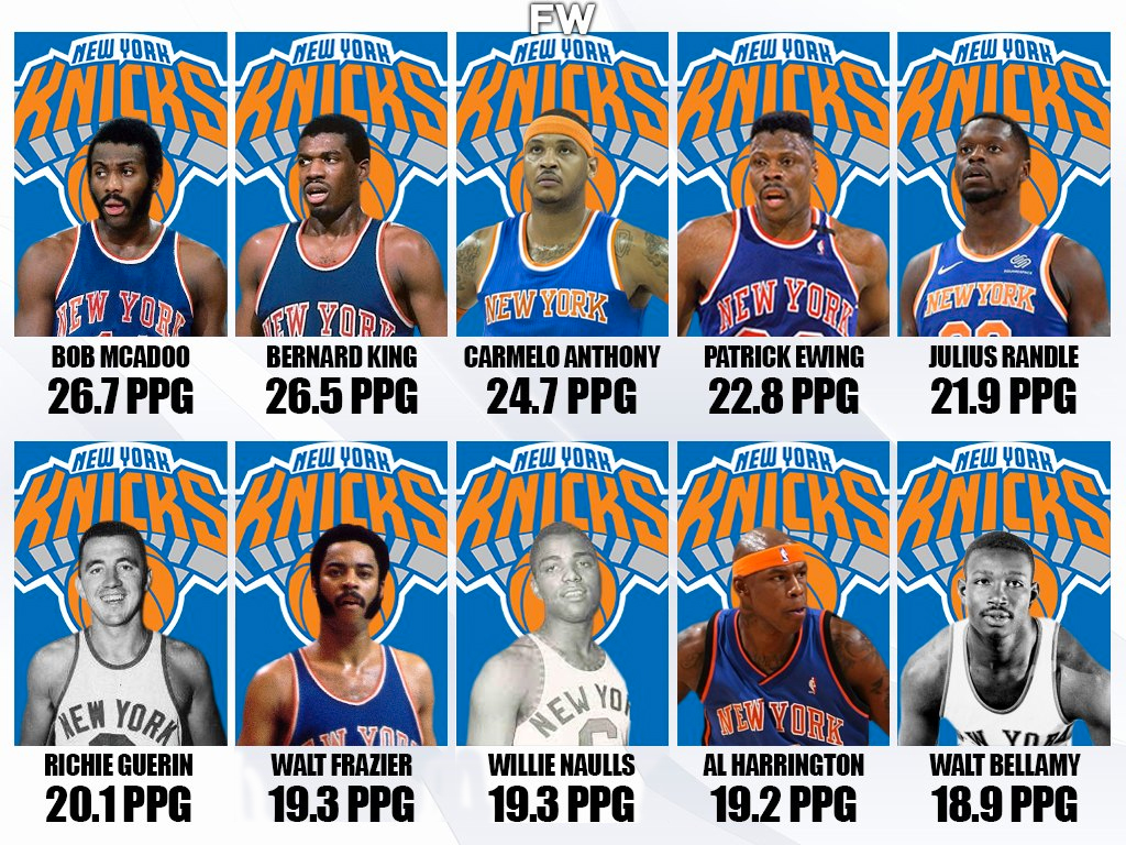 We have collected the 10 greatest scorers in Knicks history, in PPG, to uncover which players had the most impact when they were with the team. Longevity does not come into play here, because pure scoring power in the time each player played with the team is the only statistic that will be shown. By the end of this article, it will be clear which Knicks stars are the most dominant in their time with the famed New York franchise.