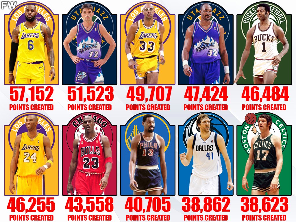 Now, let’s see which NBA legends rank at the top of the list in total points created.