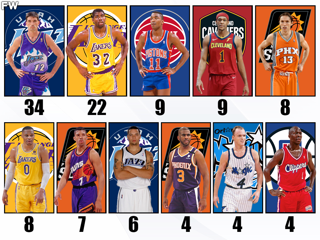 Stockton finished his career with the most assists in NBA history. He currently remains the record holder. To get to the top, you have to have a lot of assists and when you have 34 games of 20 or more assists, it certainly helps. Stockton enjoyed a long and successful partnership with Karl Malone, who finished his career as the second-best scorer in NBA history at the time. With Malone scoring most of his passes, Stockton finished with a career average of 10.5 assists per game.