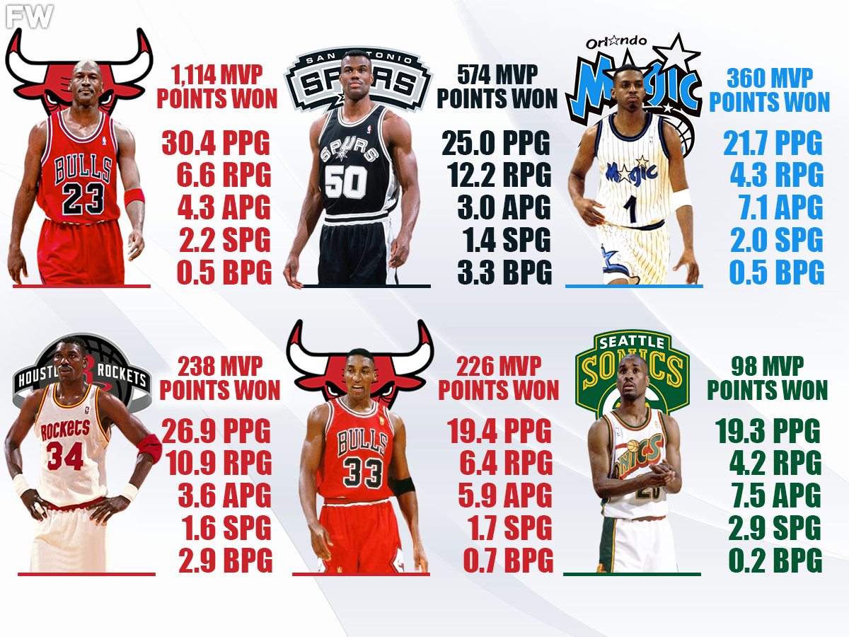 Michael Jordan returned with a vengeance, taking home the MVP, All-Star Game MVP, and Finals MVP all in the same season. He also led his Chicago Bulls to a 72-10 record, which was an NBA record until the Warriors went 73-9 in 2016. The Bulls only lost 3 games en route to the franchise’s 4th championship in 6 years, and it was all thanks to No. 23 deciding to run it back once more. For the rest of the league, Jordan’s return sparked fear in their hearts, and rightfully so, as Jordan cruised to his 4th MVP trophy.