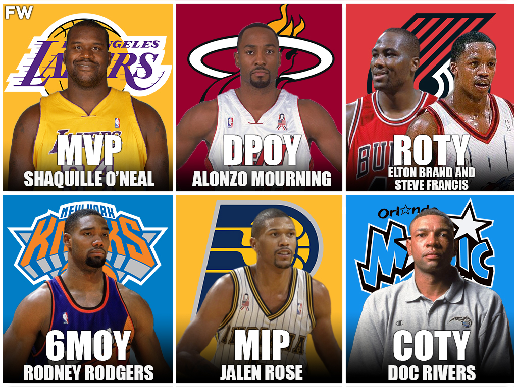 Meanwhile, Alonzo Mourning cemented his legacy as one of the game’s best centers, while new faces in Rodney Rogers, Jalen Rose, and Elton Brand took home some hardware. Orlando Magic Doc Rivers proved he could elevate the Magic even if O’Neal wasn’t on the roster.