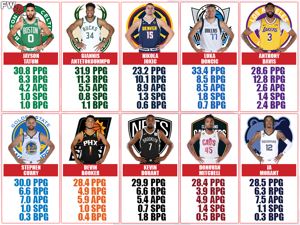 2022-23 Player Statistics: 30.8 PPG, 8.3 RPG, 4.2 APG, 1.0 SPG, 1.0 BPG