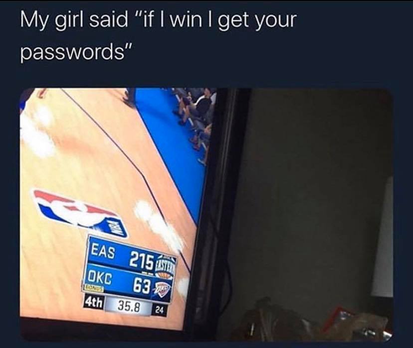 To make sure everything was right, he picked the East All-Star team as his team. The lady selected the Oklahoma City Thunder to fight for that password. In the end, the boy won the game, as expected, by a 215-63 score, totally dominating his girlfriend and leaving no doubt that the password was going to stay with him.