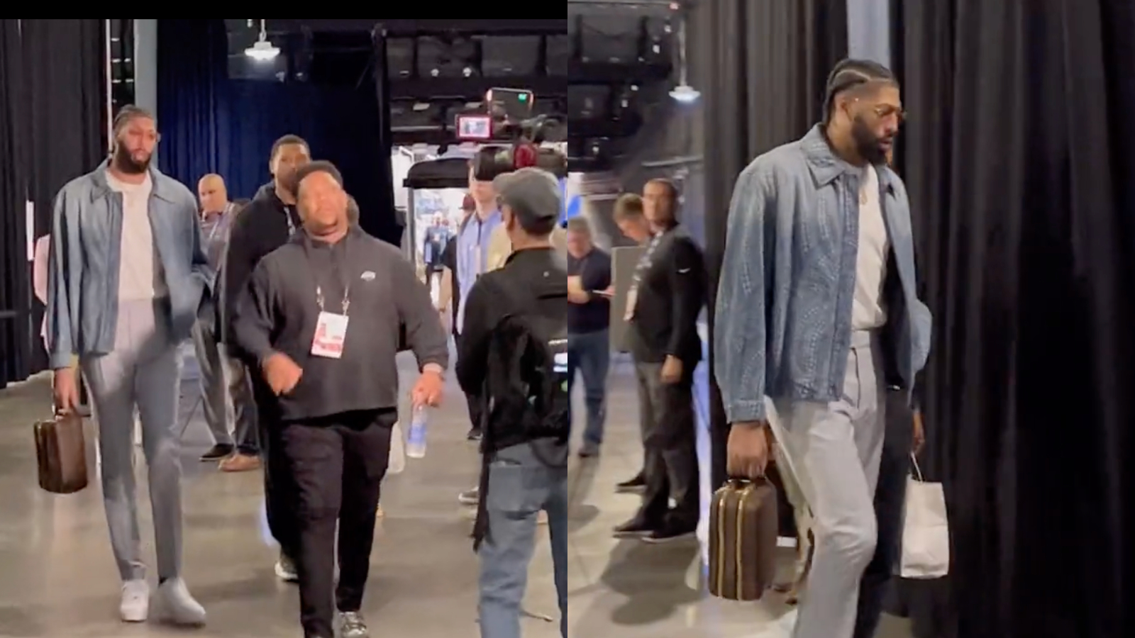 “Anthony Davis leaving Chase Center after being struck in the head in Game 5. Photographer was told to kill the light that was on him.”