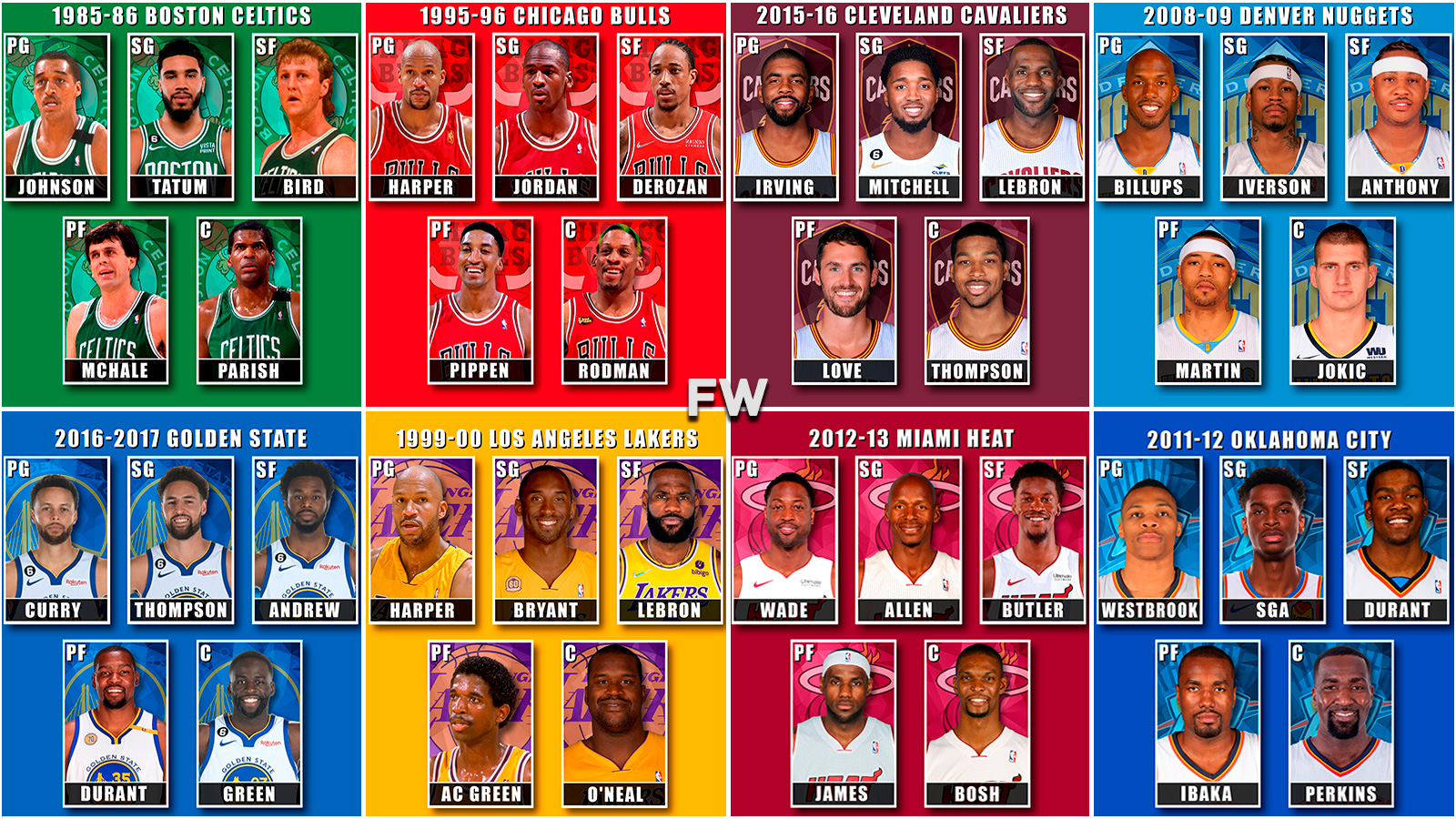 You have seen us do this before by adding one franchise legend to every current-day NBA team’s lineup as well as creating a starting lineup of only players that were drafted by a specific team. Now, we dig deep through the annals of NBA history and place current players throughout time. We will then break down each lineup as is and showcase any new advantages or weaknesses that the team may have in its new form. In the end, we encourage the fans to let us know which team they think would be the most unstoppable.