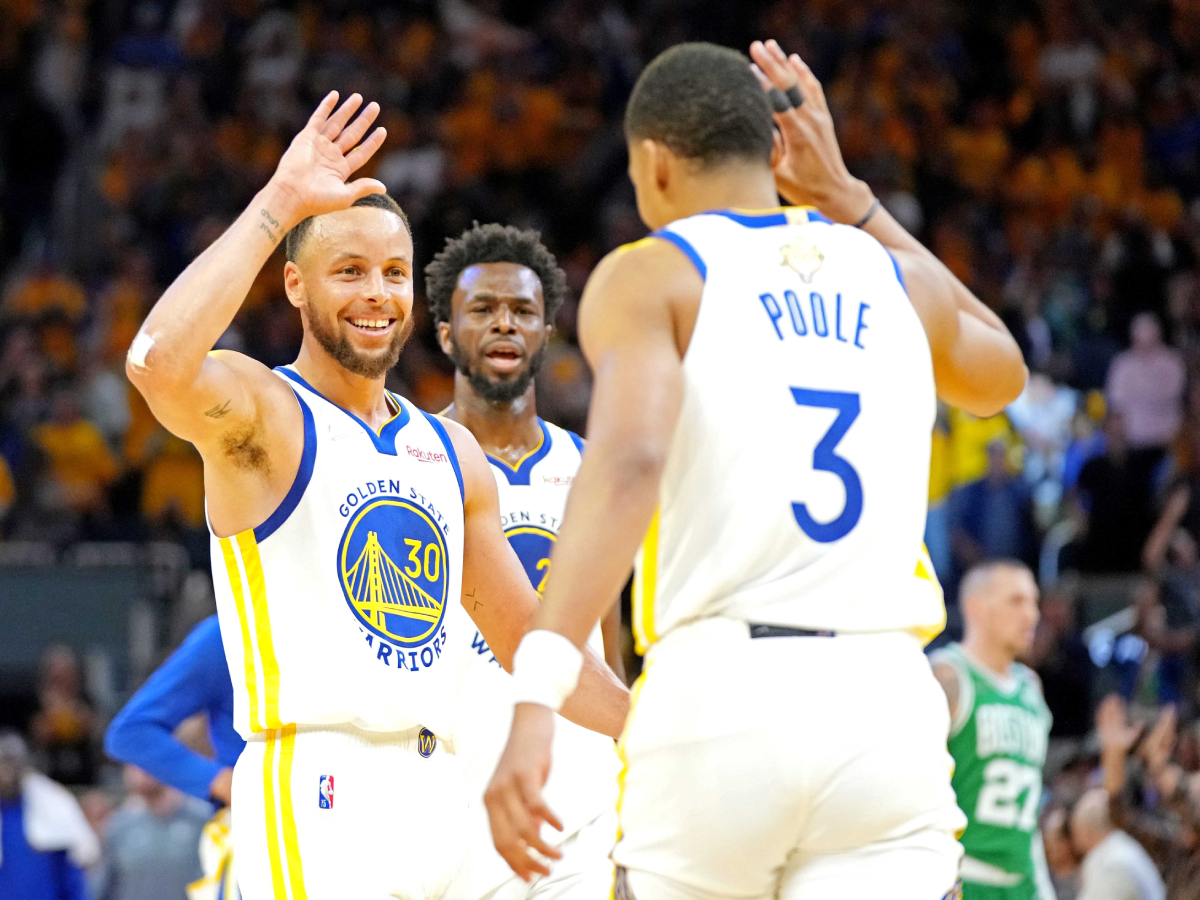 There was an iconic video of the aftermath of Poole making that shot, with Steph Curry in the background looking incredibly happy for his young teammate. Well, Curry hit almost all the important shots as he carried the Warriors to a Game 4 win in Boston. And while Poole may not have been able to contribute too much on the floor, fans noticed that he was on hand to return the favor by looking absolutely stoked for Curry after he made one of those massive shots.