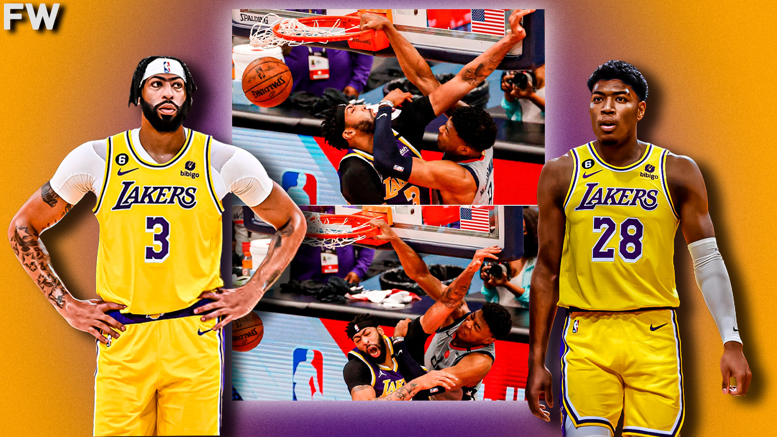 Rui Hachimura has a clip saved on his phone of when he dunked on AD. AD said Rui shows Reaves “all the time.”