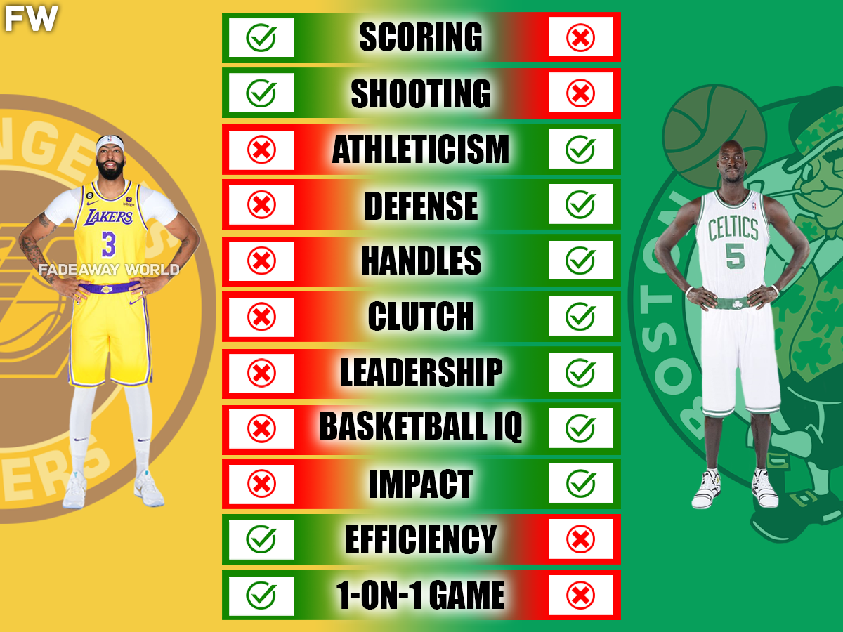 For Davis, his best seasons came from 2014 with the New Orleans Pelicans through 2020 when he won his first championship with the Lakers in the bubble. Garnett was at his peak from 2000 through 2008 with the Minnesota Timberwolves when he became league MVP through the time he captured his first championship with the Boston Celtics in 2008. While Garnett is a universally respected NBA legend and Davis is the butt of jokes and criticized for not taking his game to an even more elite level in recent seasons, this debate is much closer than you would think when you take a look at their peak performance.