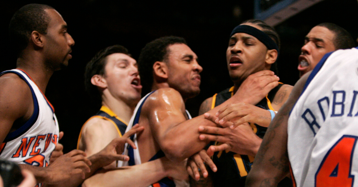 Anthony, JR Smith, Nate Robinson, Jared Jeffries, and more were involved in this altercation that cost some players severe suspensions.