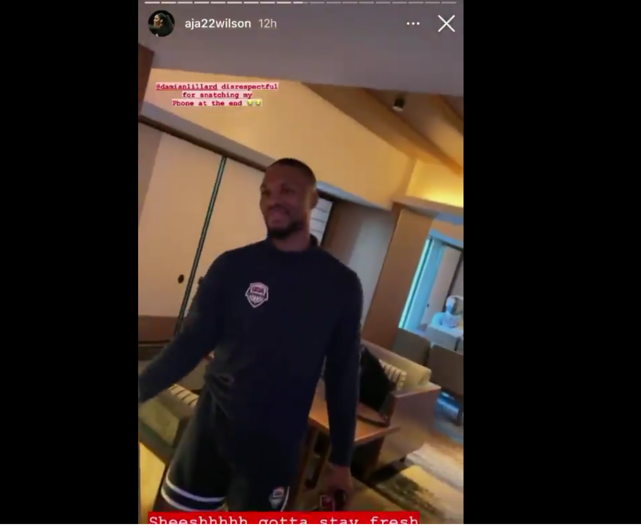 Wilson went after Lillard’s fresh cut until the player got tired and snatched the phone from A’ja’s hands. He got roasted big time, but everything was friendly.