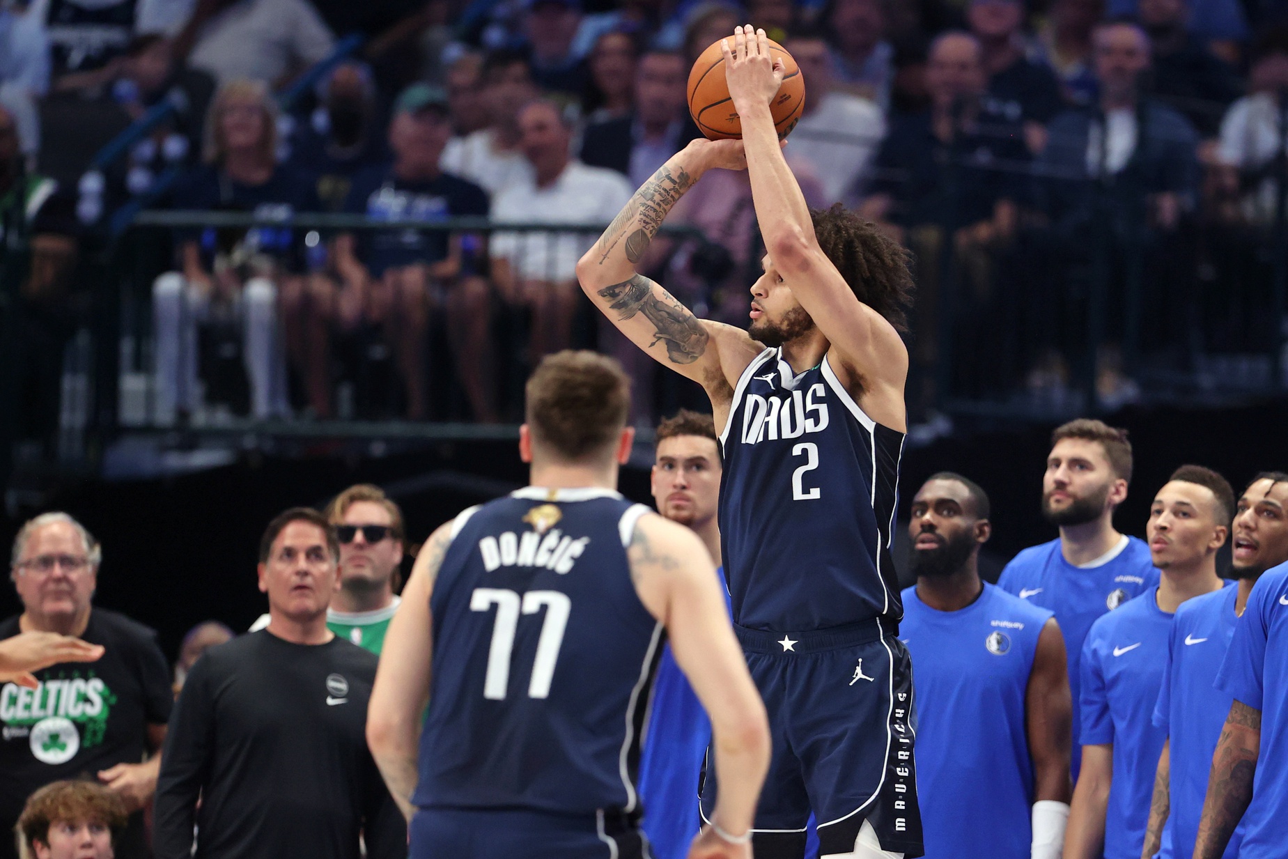 “It was for her. She helped me make it. She’s going to help me make a lot more. She helps me make (shots) the free throw line, she helps me make reads. I’m just thankful for… having Luka pass me the ball in that position, I’m happy I knocked it down. Just got to be able to make the next one.”
