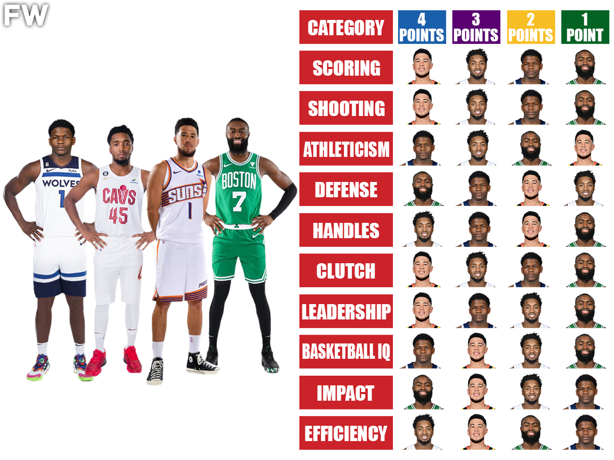 Now, it’s time to break down who the best shooting guard in the NBA right now is between Devin Booker, Anthony Edwards, Donovan Mitchell, and Jaylen Brown.