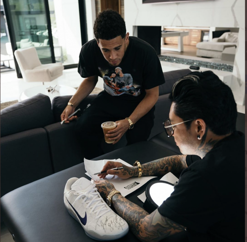 In fact, it seems Booker is following through on a challenge issued to him by Kobe in 2016 by the Mamba. After one game, during his final season, Kobe signed Booker’s shoes with the words “Be legendary.” Now, over a month since his death, Book is getting those same words tattooed on his arm.