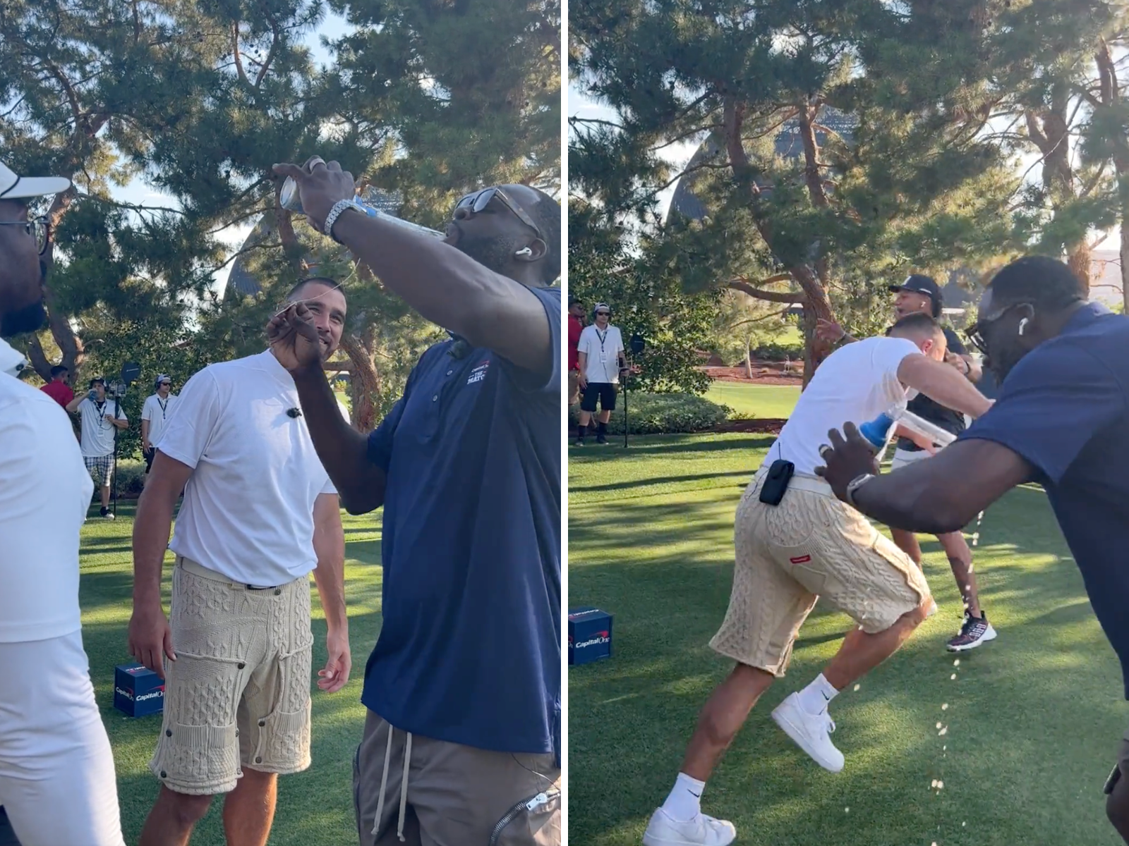 The fun part aside, the Chiefs duo eventually pulled off a win against Curry and Klay with a 3-and-2 win. And Green, well, he can maybe take lessons on how to chug a beer with a beer bong.
