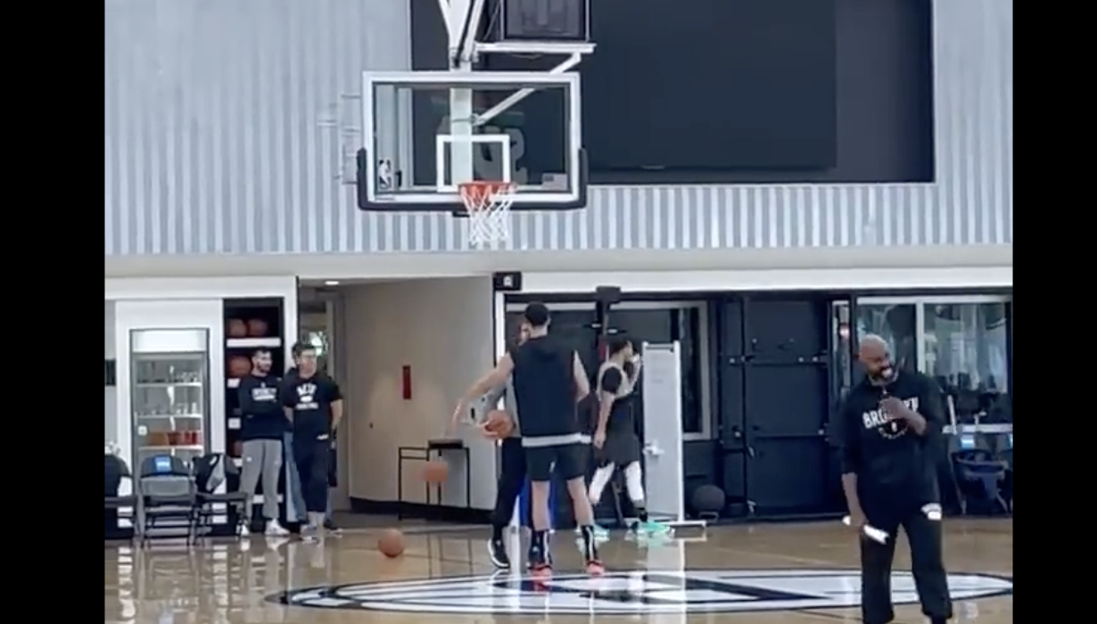Ben Simmons working with Kyle Korver at Nets practice today.