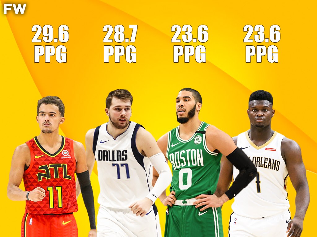 Specifically, some of the league’s youngest stars (21-year-olds) have been on an absolute tear leading their teams and dominating their opponents on a nightly basis. And, for the first time in NBA History, four of them are averaging over 21 points: Trae Young Luke Doncic, Jayson Tatum, and Zion Williamson.