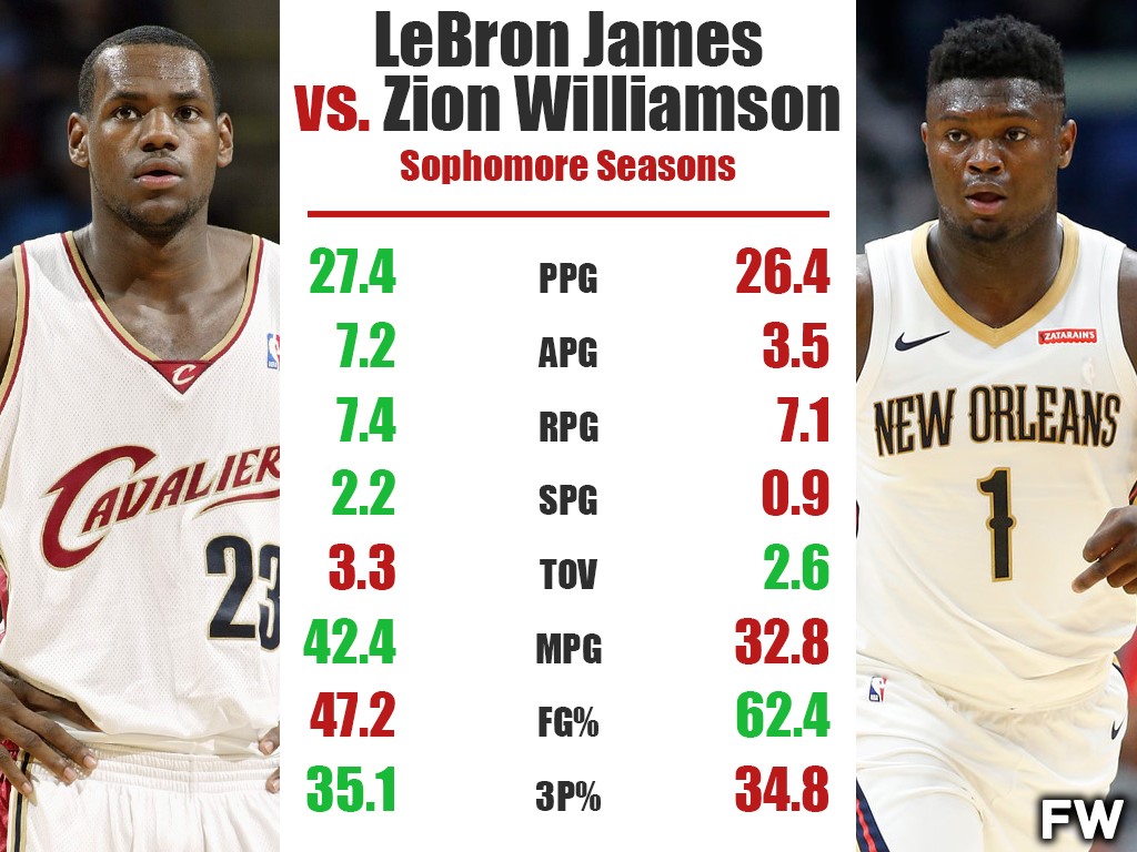But which superstar had the better sophomore season? Zion has taken a jump to become an All-Star in only his second season, but does he have a better sophomore season than LeBron? Here is the statistical breakdown of the sophomore seasons of two transcendent stars in the NBA.
