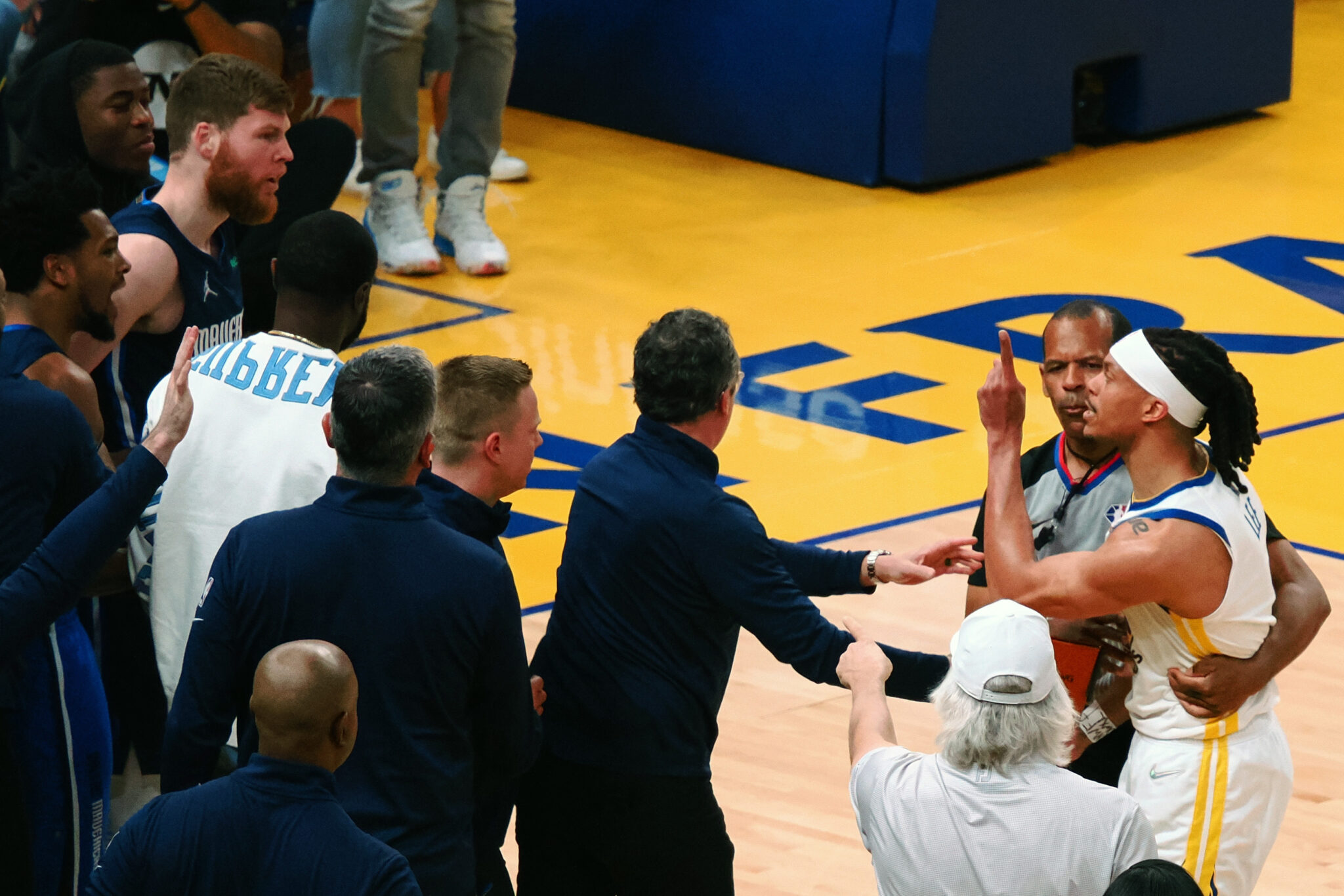 The incident took place right in front of the Mavs bench and the two exchanged some words as Lee was asked to step away by the referees. Draymond, however, had something to say to the Mavericks’ bench, and he had to be held back by the Warriors coaching staff as he risked getting ejected from the game.