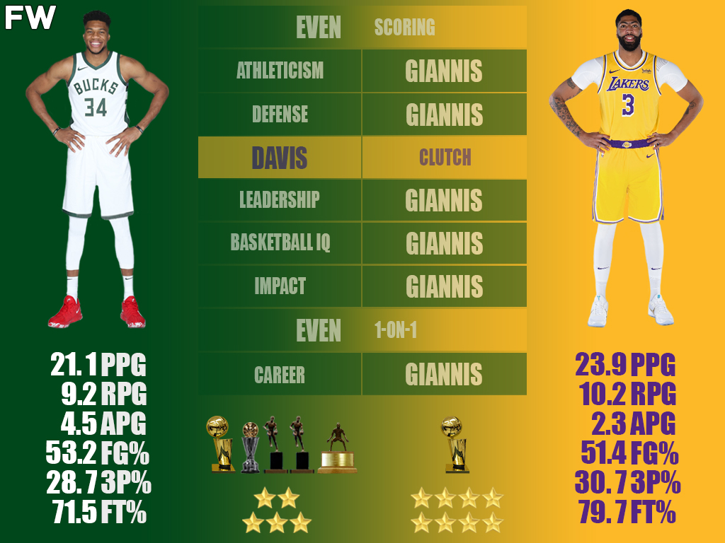 But how do Giannis and Davis compare to one another? Giannis Antetokounmpo is a two-time MVP who has led the Milwaukee Bucks to the NBA championship, along with capturing other accolades such as Defensive Player of the Year. Anthony Davis is the most skilled big man in the game and was the reason the Lakers went from missing the playoffs to NBA champions in one year in 2020. But which superstar is better than the other? It is time to compare between two of (arguably) the top-5 players in the league and try to find a winner.