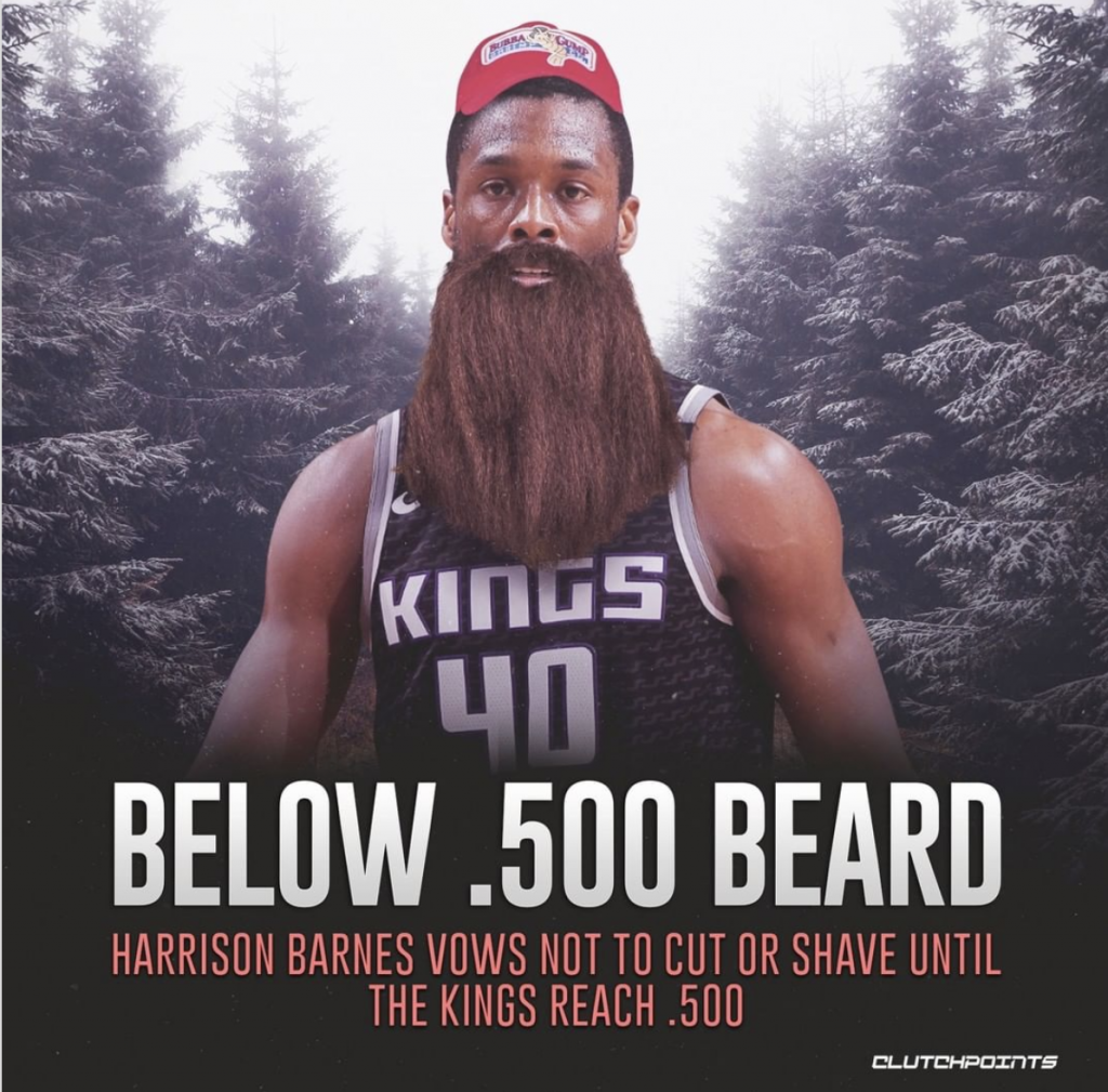 Seven years later, Sacramento’s Harrison Barnes is on an identical path, as he promised to not cut or shave his hair until the Kings are back at .500 or until the season ends. It’s mid-February and the Kings are 21-32.