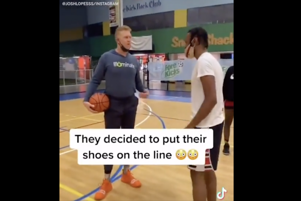 In a Tik-Tok that has gone viral online, a teenager challenges NBA legend Brian Scalabrine (AKA The White Mamba) to a 1v1, even putting his shoes on the line, only to get completely wiped out. Here’s the footage: