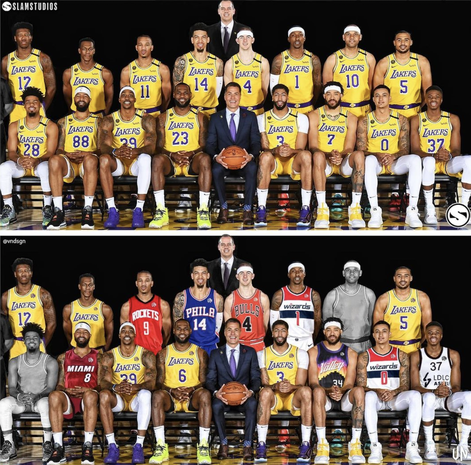 But that title-winning roster looks extremely different today. Slam Studios posted a picture on Instagram with the 2019-20 Lakers roster, comparing the two squads from then and now.