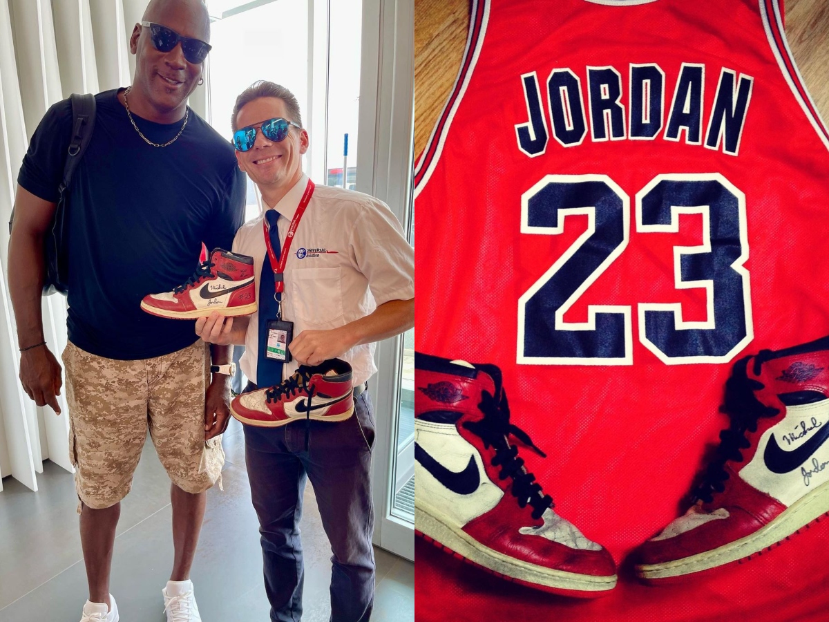 Still, one of the biggest moments of this ‘tour’ took place a couple of days ago when Jordan ran into a private VIP airport manager that surprised him with a vintage pair of Jordan shoes that had his old signature. MJ confirmed that he used his old signature on those kicks 36 years after he did it, making an epic coincidence.