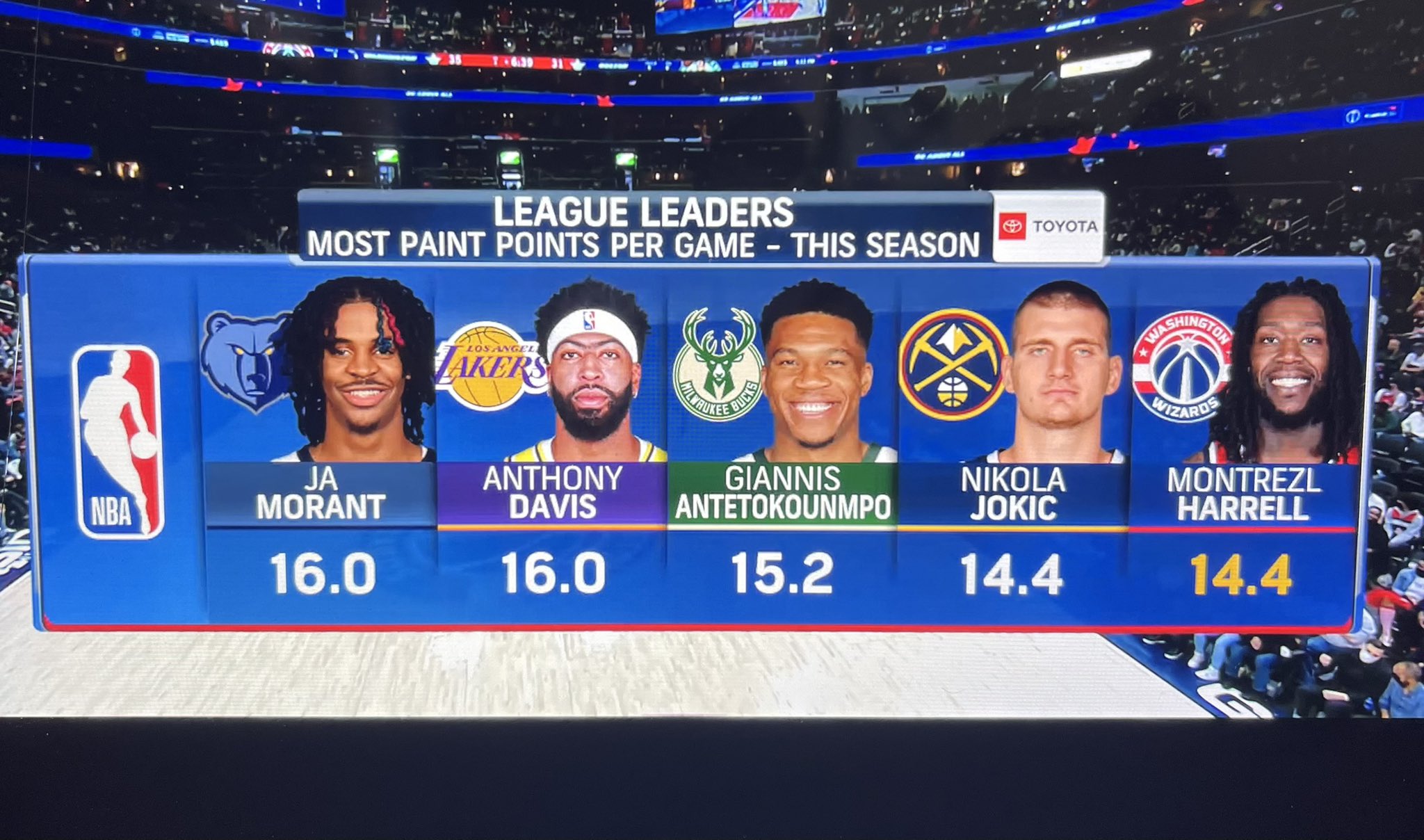 Giannis Antetokounmpo (15.2), Nikola Jokic (14.4) and Montrezl Harrell (14.4) complete the top 5.