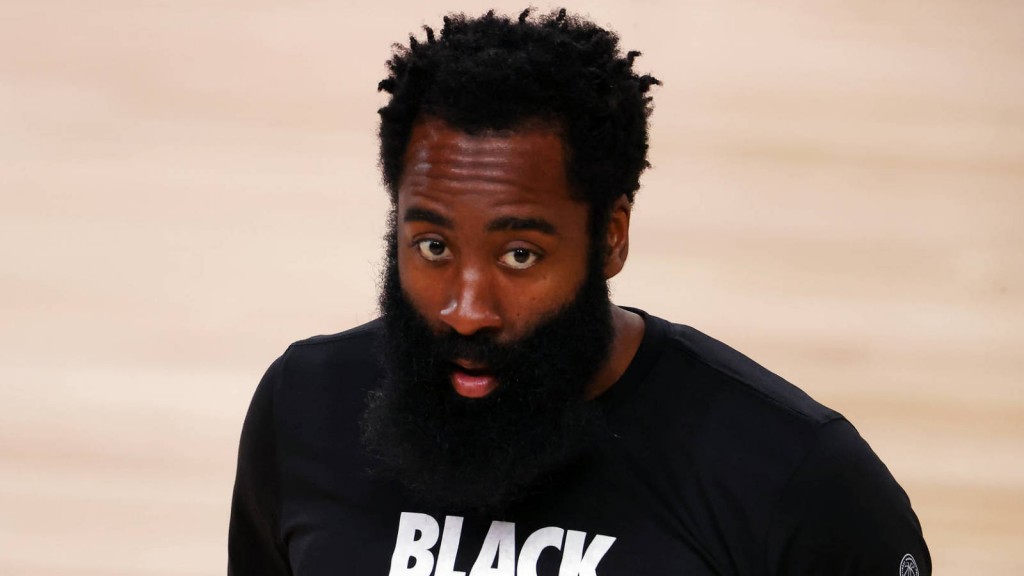 James Harden on if he still wants to be traded from the Rockets: “Right now I’m just focused on being here.”