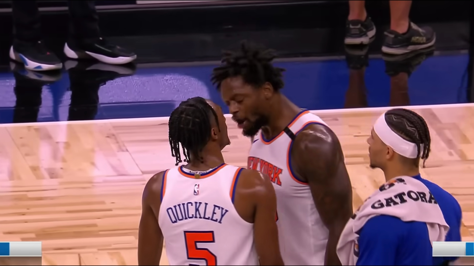 The video clearly shows Randle taking out his frustration on Quickley at halftime. Randle is considered the leader of the team, and he certainly needs to do better to fulfill that role for the team.