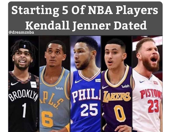 On Sunday, a Twitter user by the name of @knicks_tape99, tweeted out a picture that consisted of five well known NBA players, calling it the “Starting 5 of NBA Players Kendall Jenner dated.”