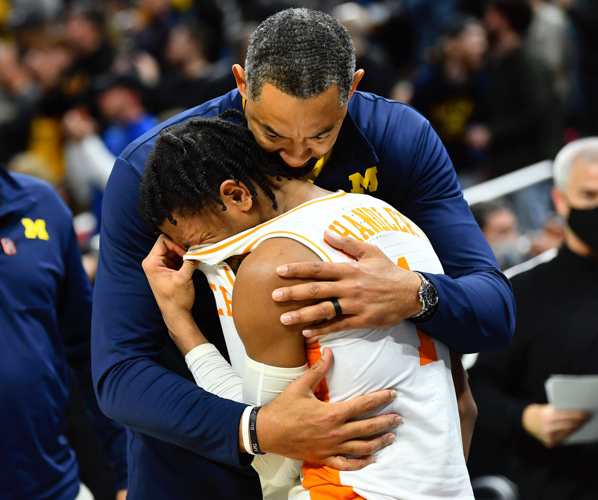 Michigan HC Juwan Howard embracing Tennessee’s Kennedy Chandler: pic.twitter.com/e6r7BoT3RG