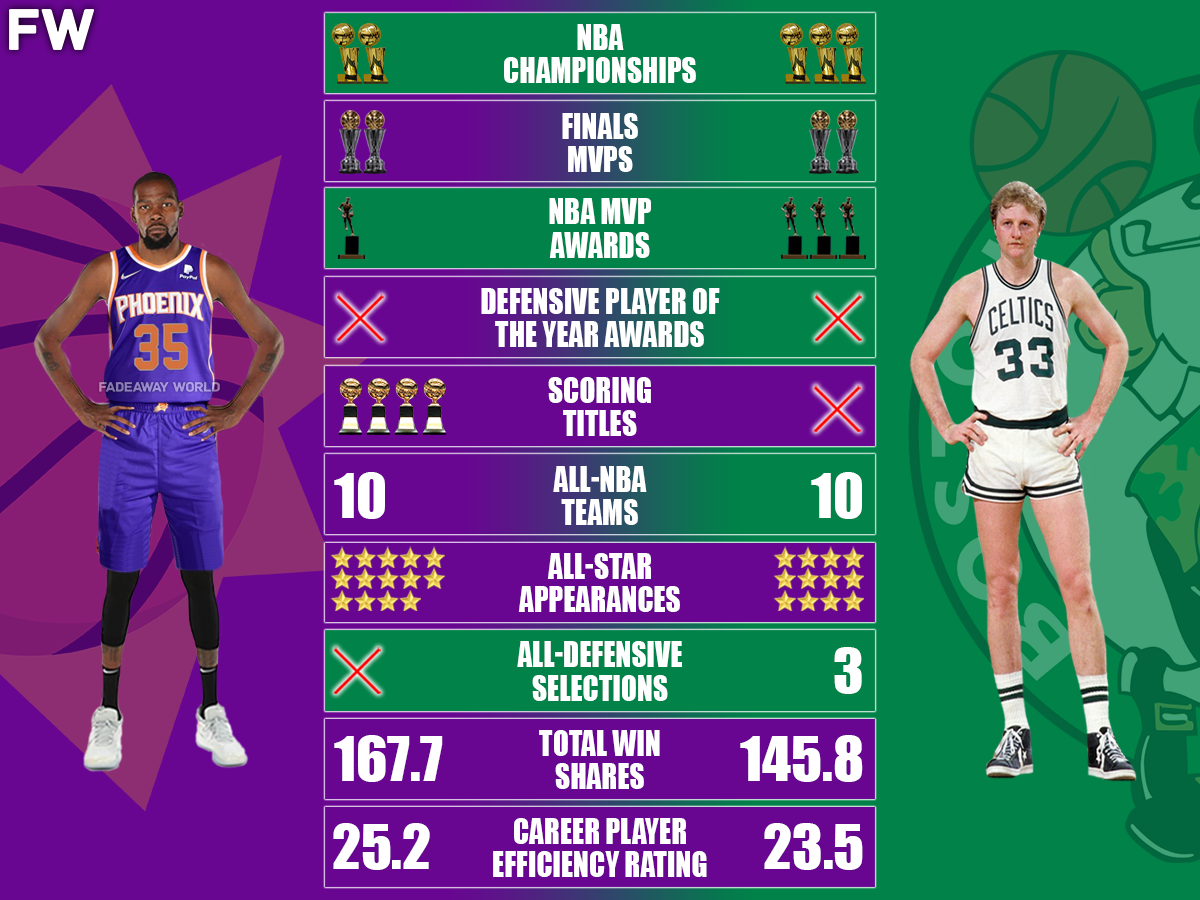 Very simply, fans who value championships and individual accolades in a legacy debate are going to favor Bird. The ones who value skills and overall offensive production are going to favor Durant. Whatever side of the argument you fall on, this is sure to be another NBA debate that fails to get settled anytime soon.