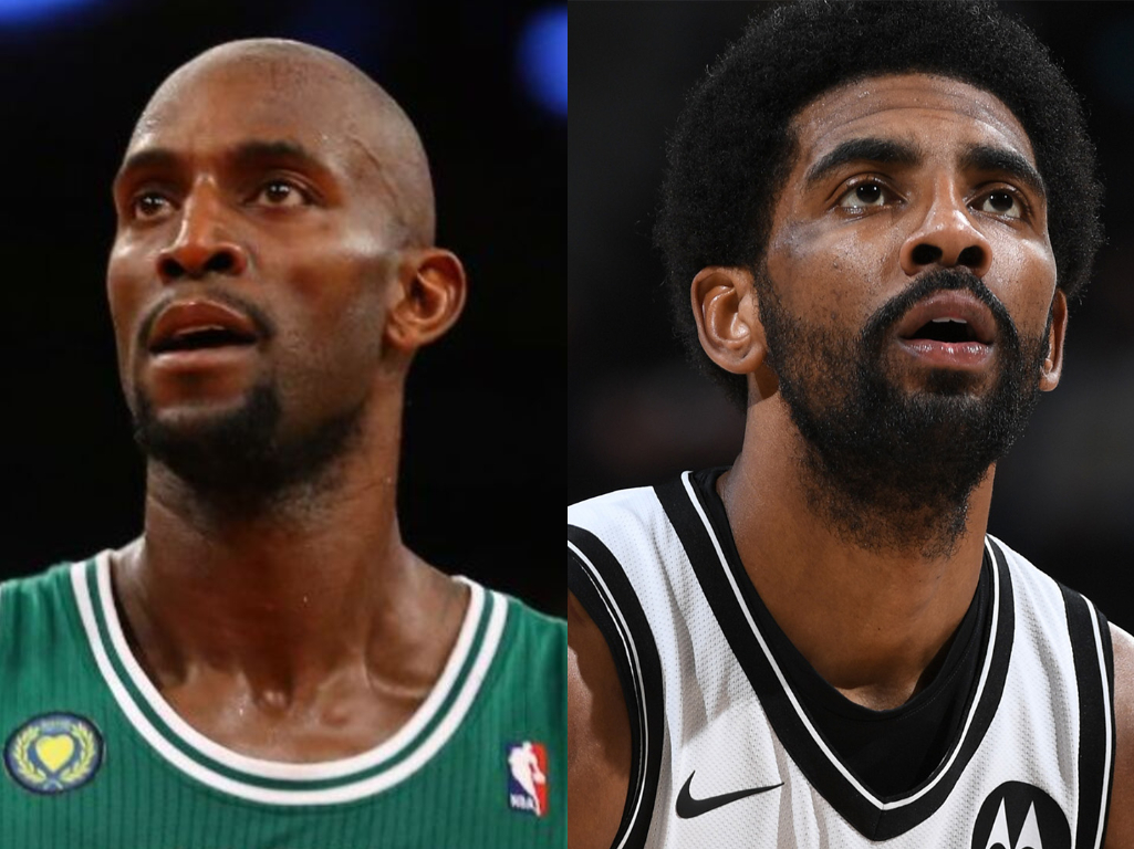 Kevin Garnett Calls Out Kyrie Irving Over Stomping On The Celtics Logo: “So Nobody Gonna Say Anything About Kyrie Stomping ‘Lucky’?”