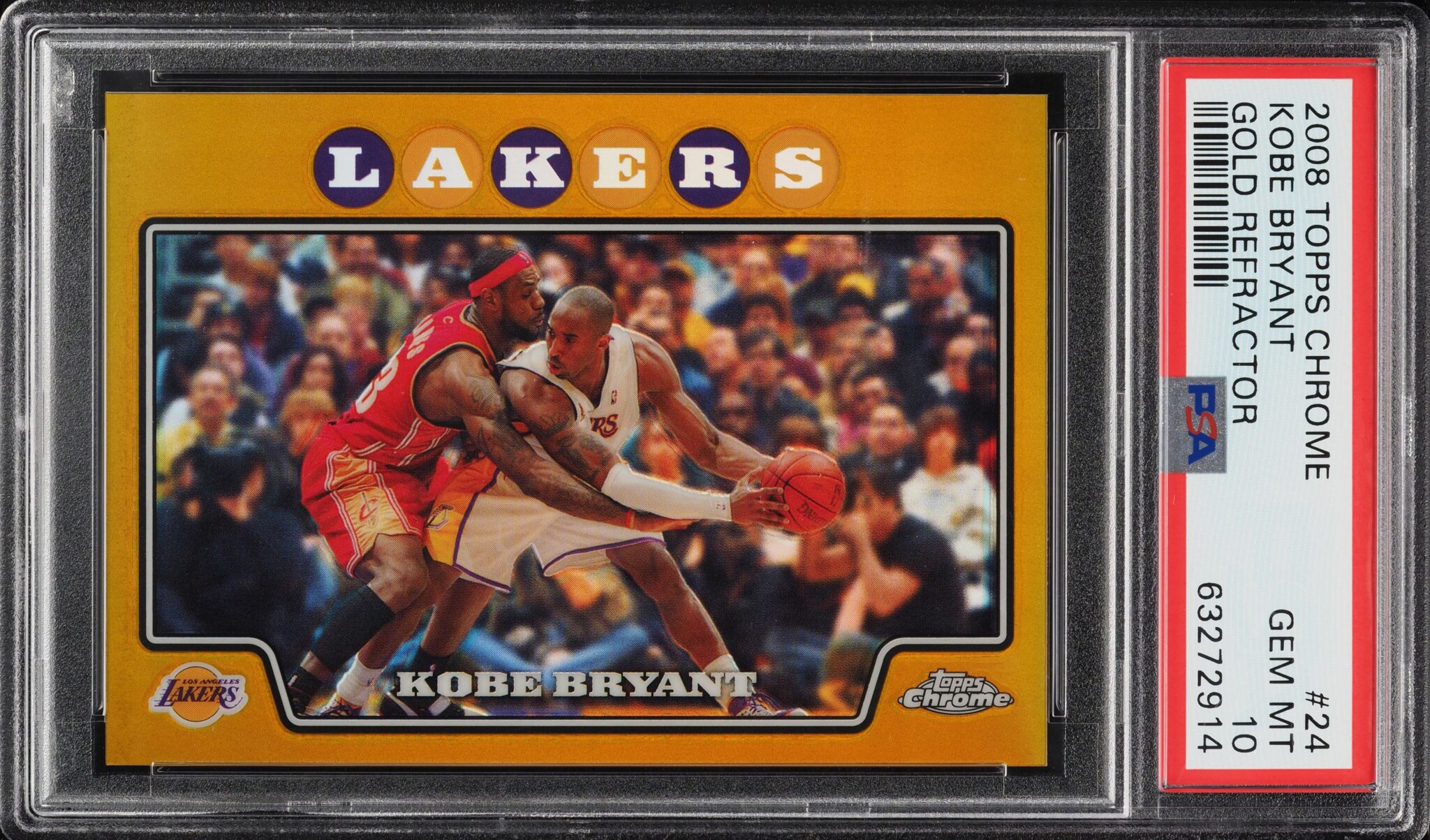 It sat in a shoebox for years but over the weekend, one of the 50 copies of the 2008 Topps Chrome Gold Refractor Kobe Bryant–the card that shows him being guarded intensely by LeBron James–sold for a whopper of a price.