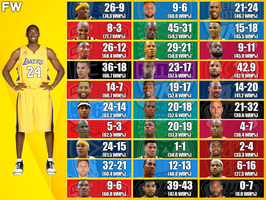 Here are Kobe Bryant’s individual records against NBA superstars and legends of the past and present.