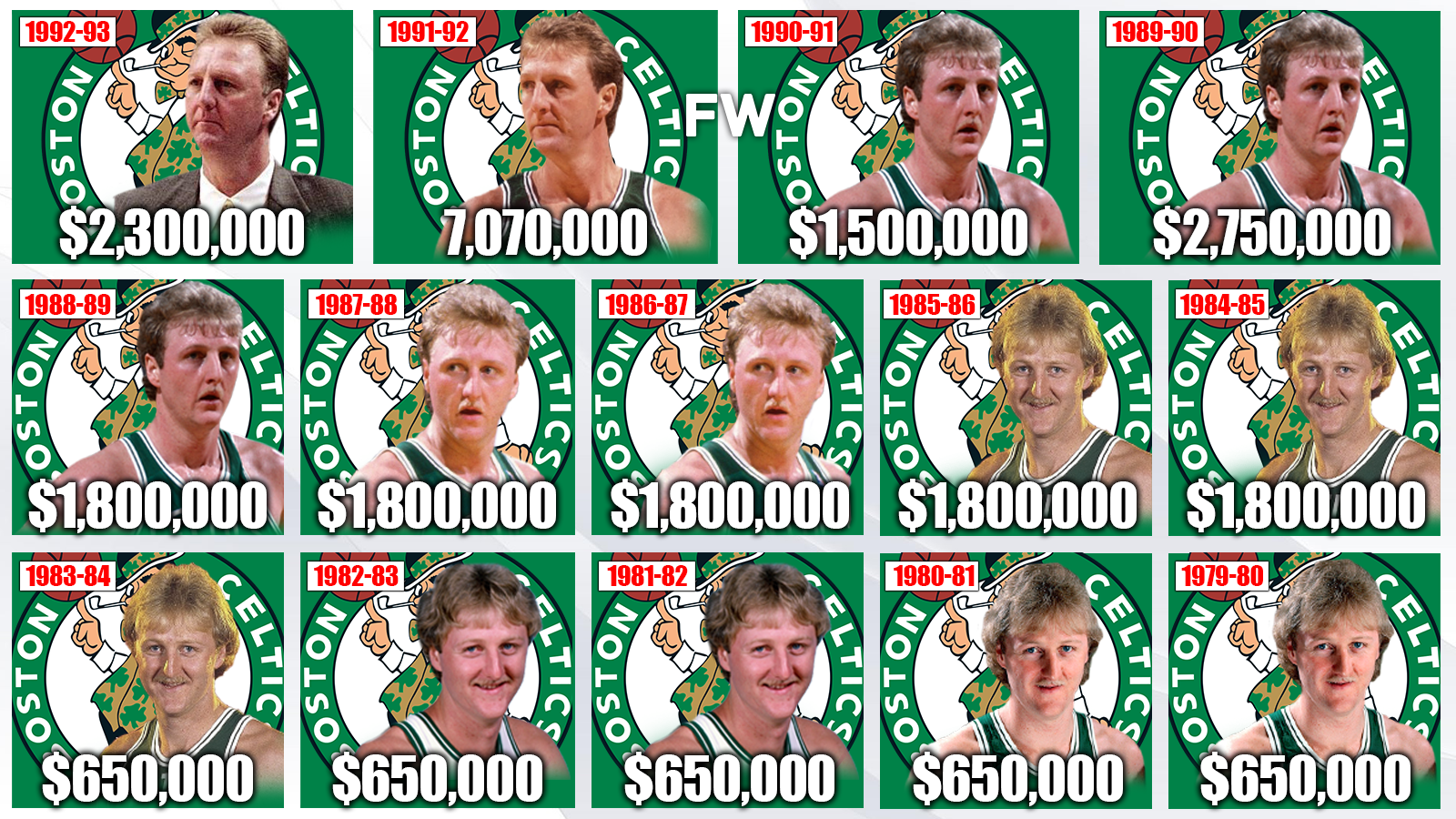 Before the season, Bird announced that he would retire from the NBA. Quickly after, the Celtics retired his No. 33 jersey. Even though Bird retired, he still received a salary. The salary was the 42nd highest salary in the league.