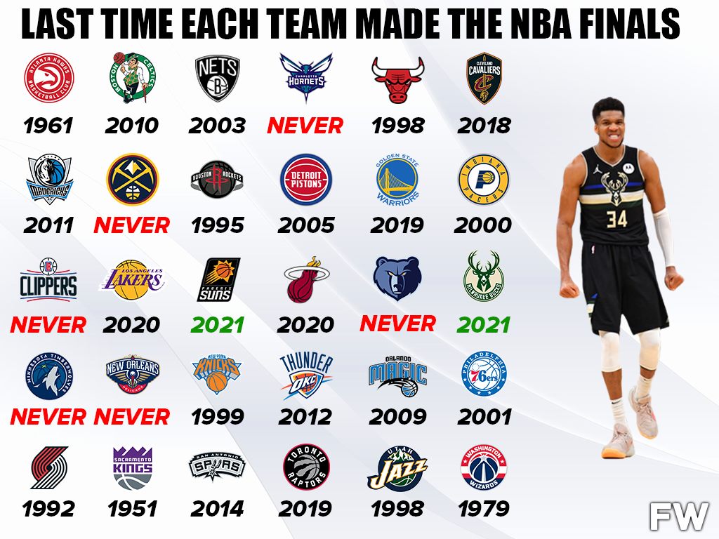 After the Milwaukee Bucks broke their 50-year championship drought, others are trying to make it back to the NBA Finals for an even longer period. Heading into the 2021-2022 season, which team will make a run to the very end. For some teams, it will be the first time in a very long time. These years are the last time each NBA franchise made the NBA Finals.