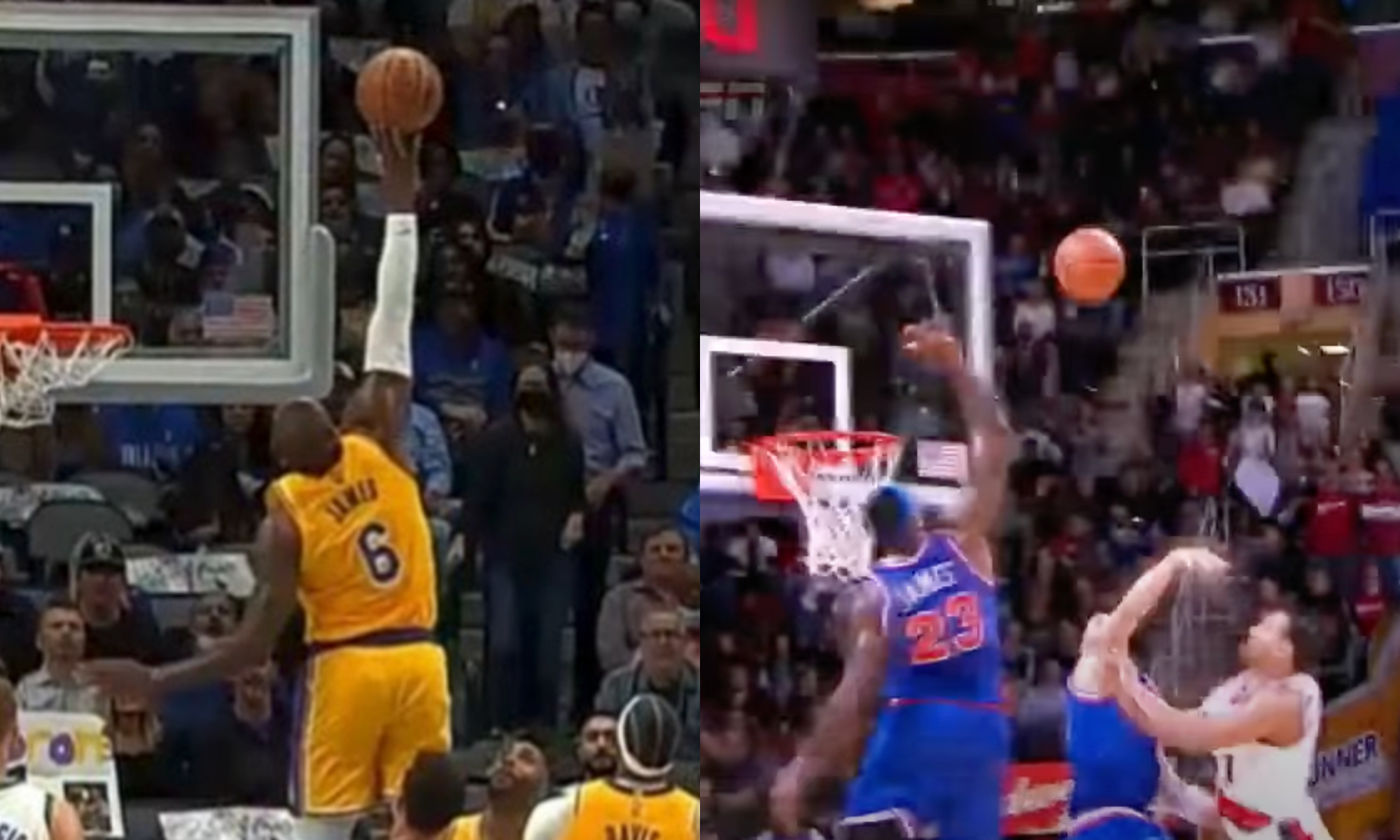 During the Lakers’ game against the Mavericks, LeBron James showed off his signature vertical with an incredible block, in which he also had his head hit the backboard. Surprisingly enough, that block came almost exactly 11 years after LeBron James’ iconic block over Brandon Roy and the Portland Trail Blazers.