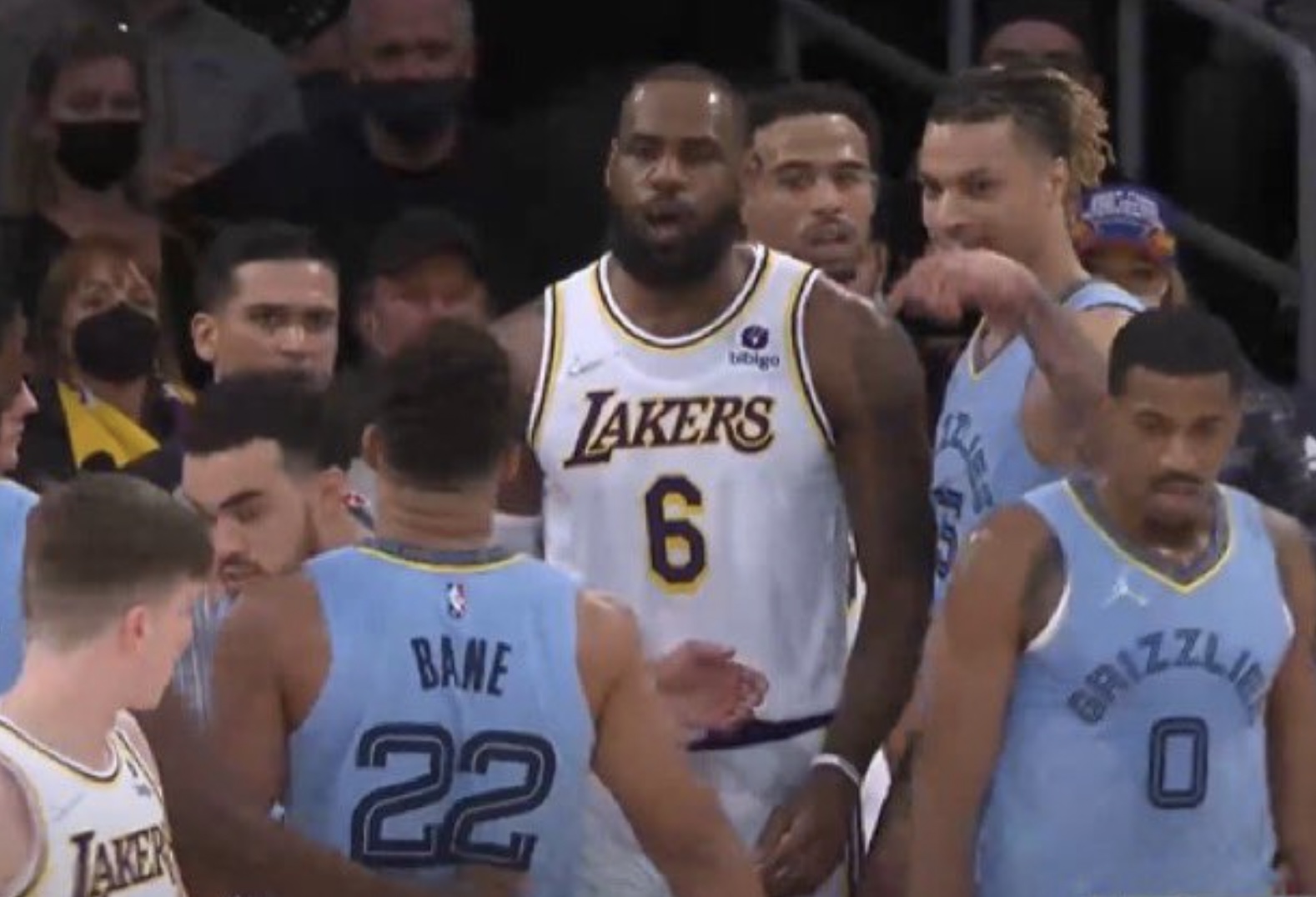 During the game, Desmond Bane took the ball to the basket near LeBron James. After making the shot, Bane had something to say to James, and James wasn’t having it. He lightly shoved Bane and had words for him. The rest of the Grizzlies tried to neutralize the situation, but James wasn’t looking to calm down.