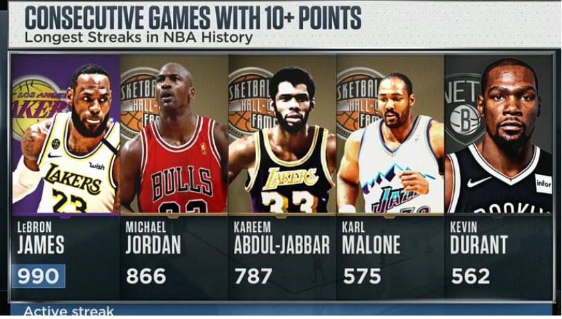LeBron James Has The Most Consecutive Games With 10+ Points