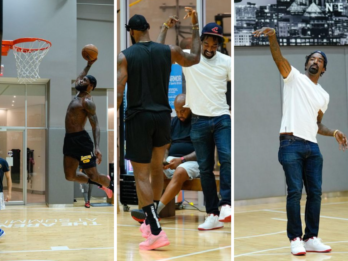 LeBron was recently working out with legendary basketball coach Chris Brickley, who uploaded pictures of their workout on Instagram. The photos showed that a guest had dropped by the session, as two-time champion JR Smith was spotted shooting shots in jeans while LeBron worked out in his Lakers training gear.