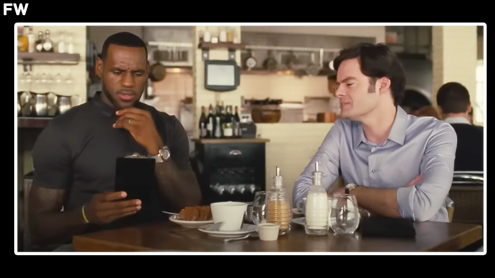 - One of the most hilarious scenes is when LeBron James tries to split a $64 restaurant bill with Hader’s character