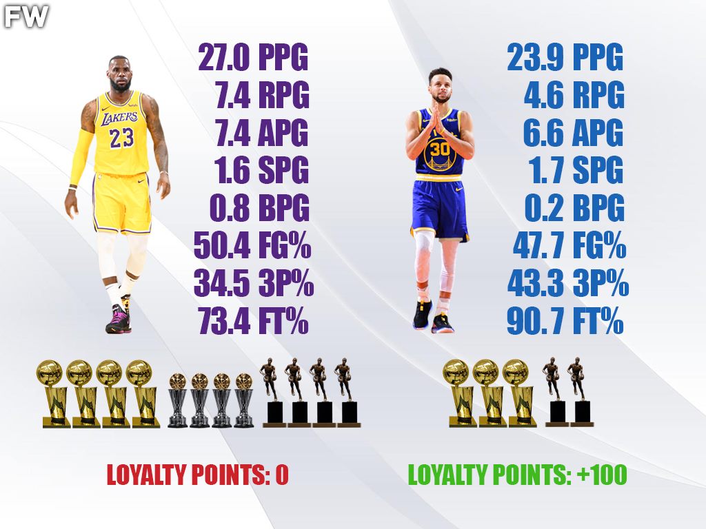 Winning rings is the single most important part of a superstars’ career, and The King has the edge. LeBron played with some all-time great players such as Anthony Davis, Dwyane Wade, and Kyrie Irving but he was always the best player on the court. Curry was the best player on the team for his first championship, but he had Kevin Durant the last two and was not the best player for the Warriors during any of his Finals appearances.