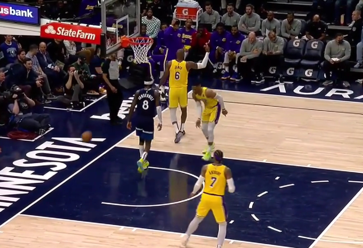 During the 3rd quarter of the game, Bron was already frustrated with the team, and when the defense didn’t even try to bother a player under the rim, he simply disconnected. Malik Beasley attacked the rim, but it was all a trick to find Jarred Vanderbilt. The forward took the ball and dunked it, getting two easy buckets for his squad.