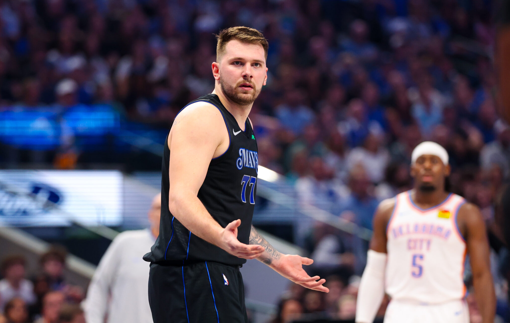 Luka says “They want a game 7 for you guys” as Mark Daigneault argues with the ref 👀 pic.twitter.com/MgQXAftCgU