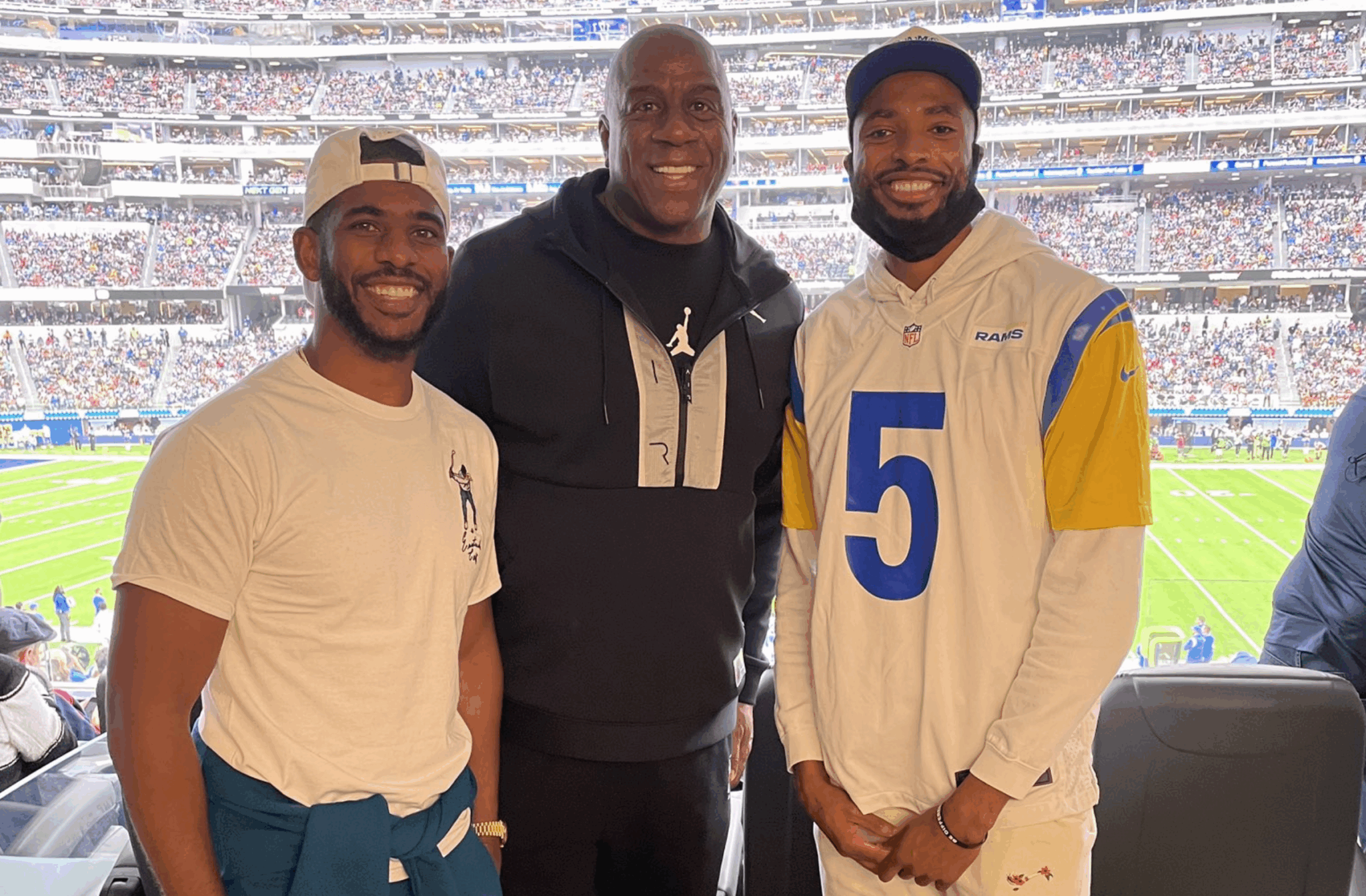 The greatest point guard in NBA history has a lot of respect for him. Los Angeles Lakers legend Magic Johnson linked up with Chris Paul and his Suns teammate Mikal Bridges at the LA Rams – Tampa Bay Buccaneers game last night. Johnson called CP3 the best floor general in the NBA today when posting their picture on Twitter.