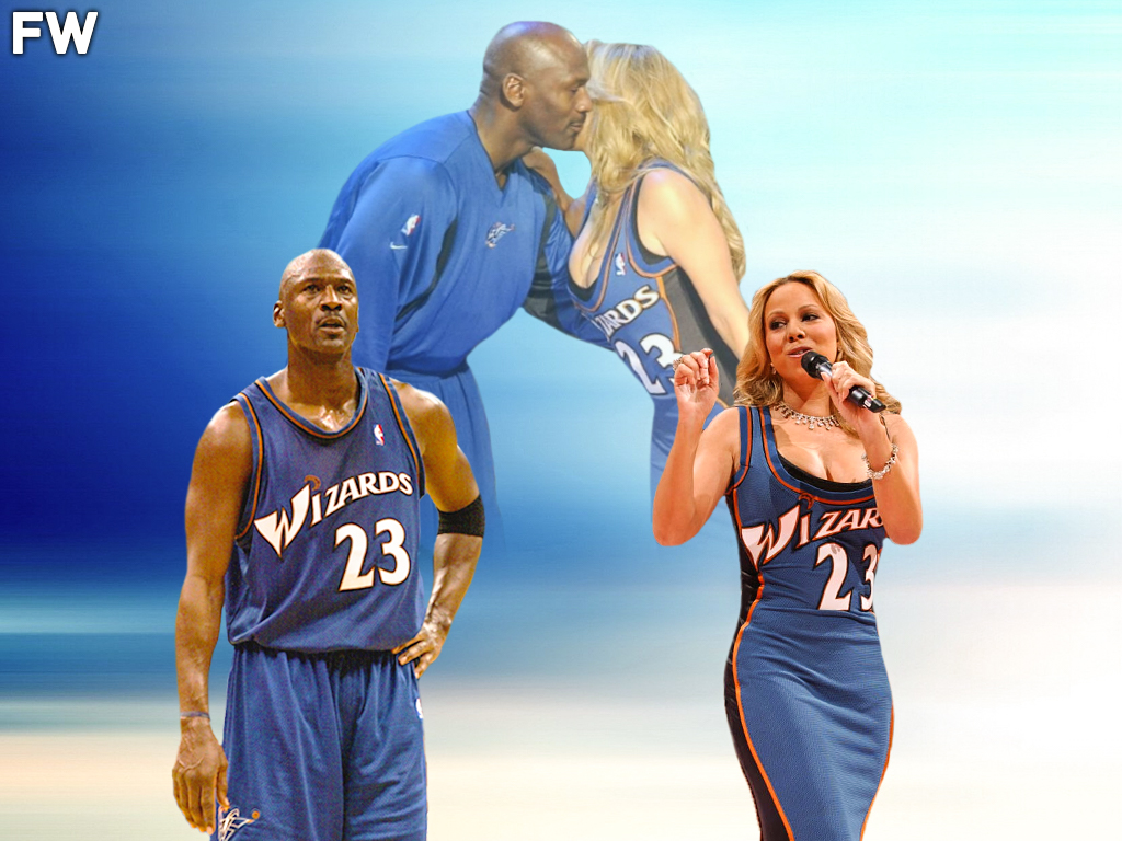 So when the 2003 NBA All-Star game rolled around, it was going to be a night dedicated to Michael Jorda. During the half-time show, legendary singer Mariah Carey came out to perform, and paid tribute to Michael Jordan in multiple ways; first, wearing a blue dress out of Jordan’s blue Washington Wizards jersey.