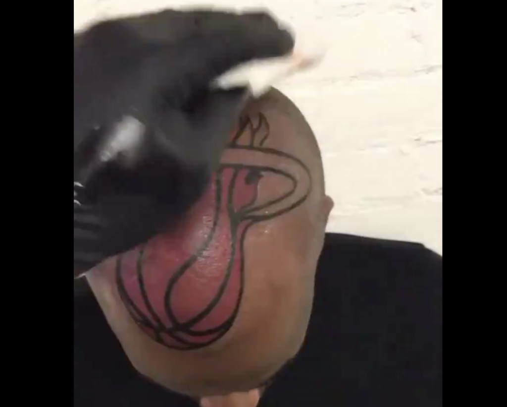 It is not yet known what prompted this man to get the Heat logo tattooed on his scalp, or if he has any regrets about it.